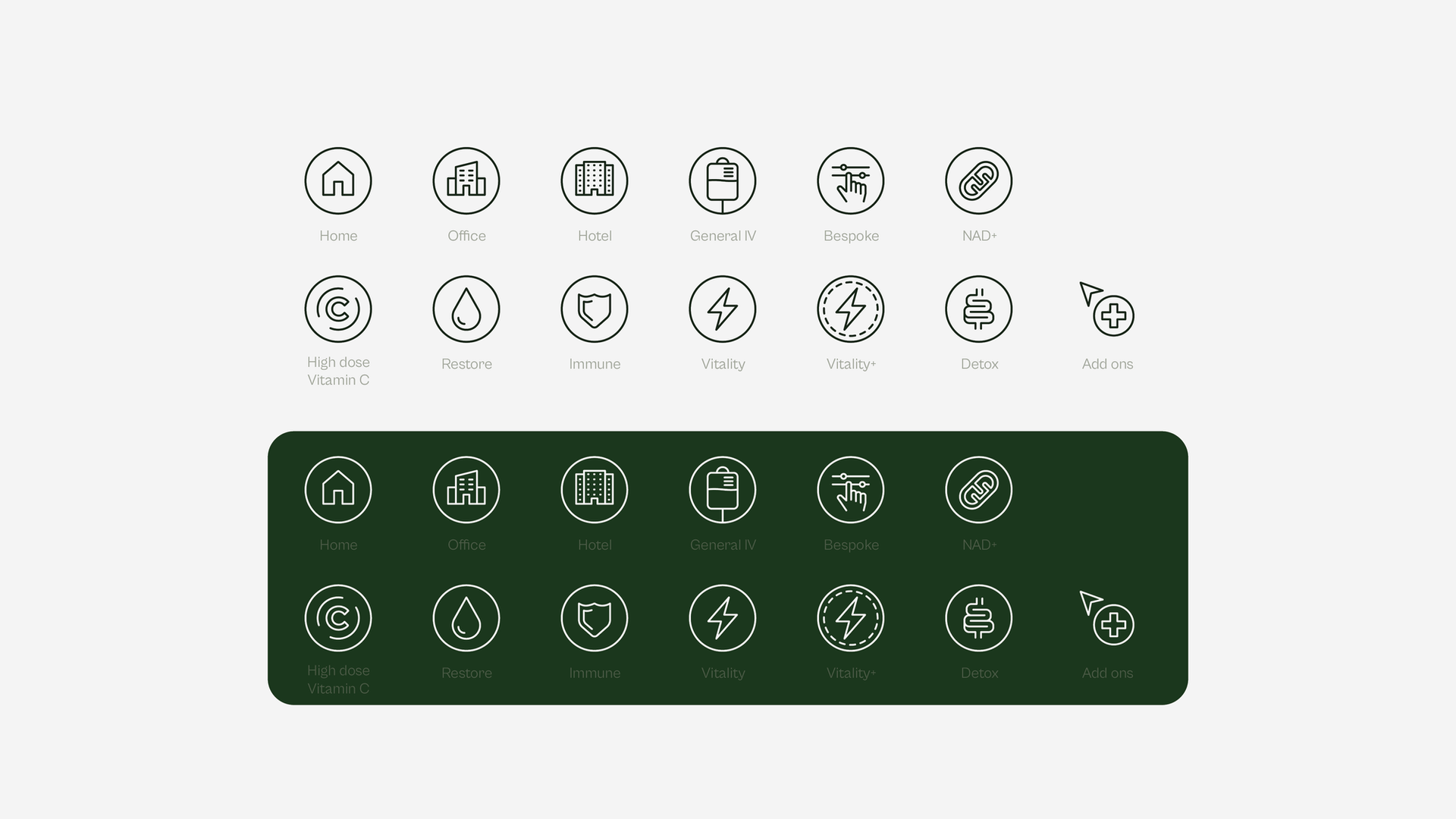We kept coming back to two keywords: clean and suitably medical. The aim was to find the perfect balance between these qualities to differentiate from the rest of the market. Drawing inspiration from the word ‘circulation,’ which refers to where an IV infusion enters the bloodstream, the brand name ‘Circul’ emerges from its first two syllables. This name not only directly ties to the core idea of blood flow but also resonates with the word ‘circle.’ This word has connotations of wholeness, harmony, and balance - all qualities that encapsulate the restorative potential of IV therapy for clients.